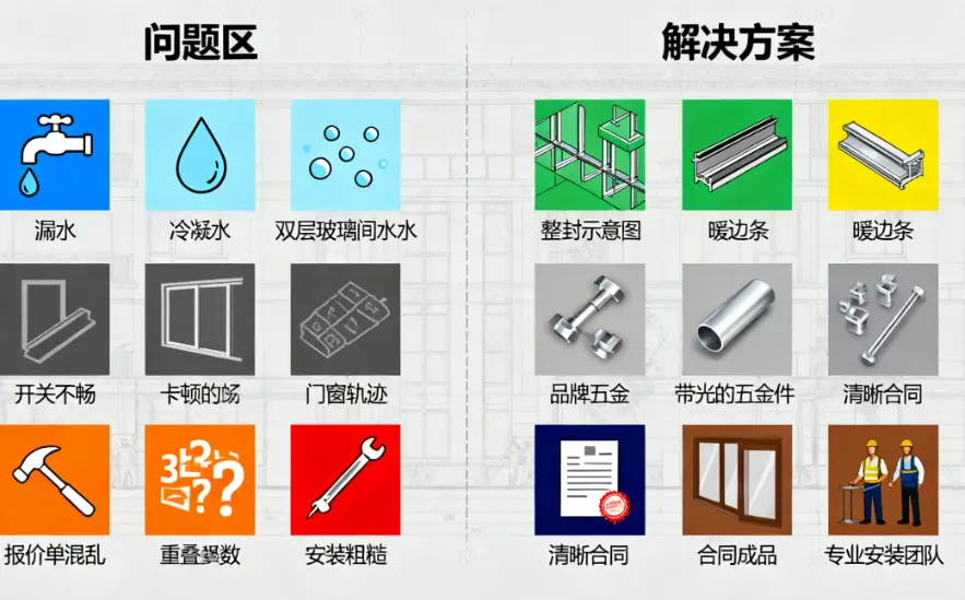 现象:过分追求最低报价,忽略综合成本。劣质门窗导致后期能耗飙升、维修频繁,总拥有成本(TCO)反而更高。避坑指南:采用价值导向而非单纯价格导向的评估体系。综合考量品牌的稳定性、产品的性能参数(如K值、隔声量)、售后服务承诺。一份清晰、透明的分项报价远比一个模糊的总价更重要。第二大坑:性能缺陷 —— 数据模糊,体验打折