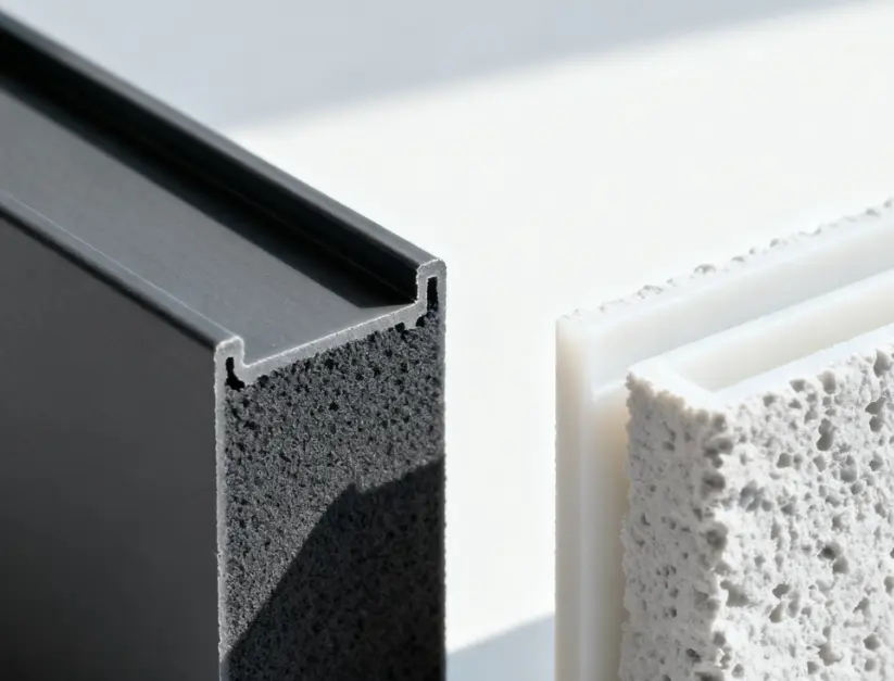 辨别方法:用放大镜观察隔热条的横截面,PA66尼龙隔热条呈白色或浅灰色,质地均匀;而PVC隔热条通常颜色较深,表面有颗粒感,且容易被刮花。优质隔热条在阳光下不易变形,而劣质PVC隔热条遇热易软化变形。